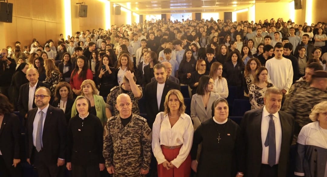Étaient également présents le Président du Conseil Supérieur du Drapeau Libanais, M. Philippe Hanine, qui a généreusement offert aux classes des drapeaux libanais et des mâts pour les terrains de sport. De plus, M. Sarkis Sarkis, homme d’affaires connu pour ses actions généreuses, ainsi que des prêtres, religieuses, membres de l’administration et de l’équipe pédagogique, la présidente et les membres du comité éducatif, le président et les membres du comité des parents, ainsi qu’un bouquet de fleurs d’anciens élèves et d’étudiants, ont honoré la célébration de leur présence.